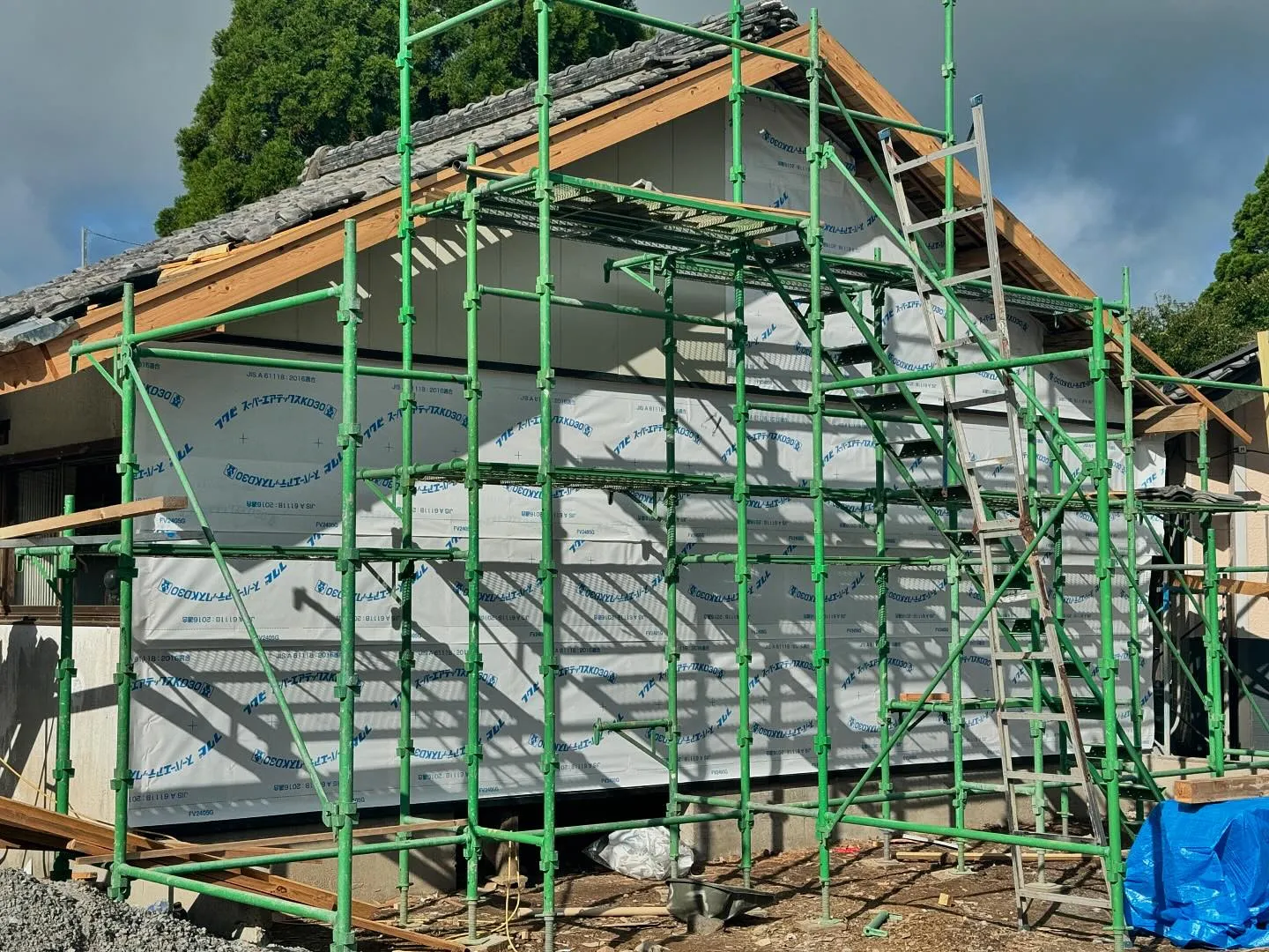叔父さんの指示の元の作業!民家を3/2解体した後の外壁張りでした!